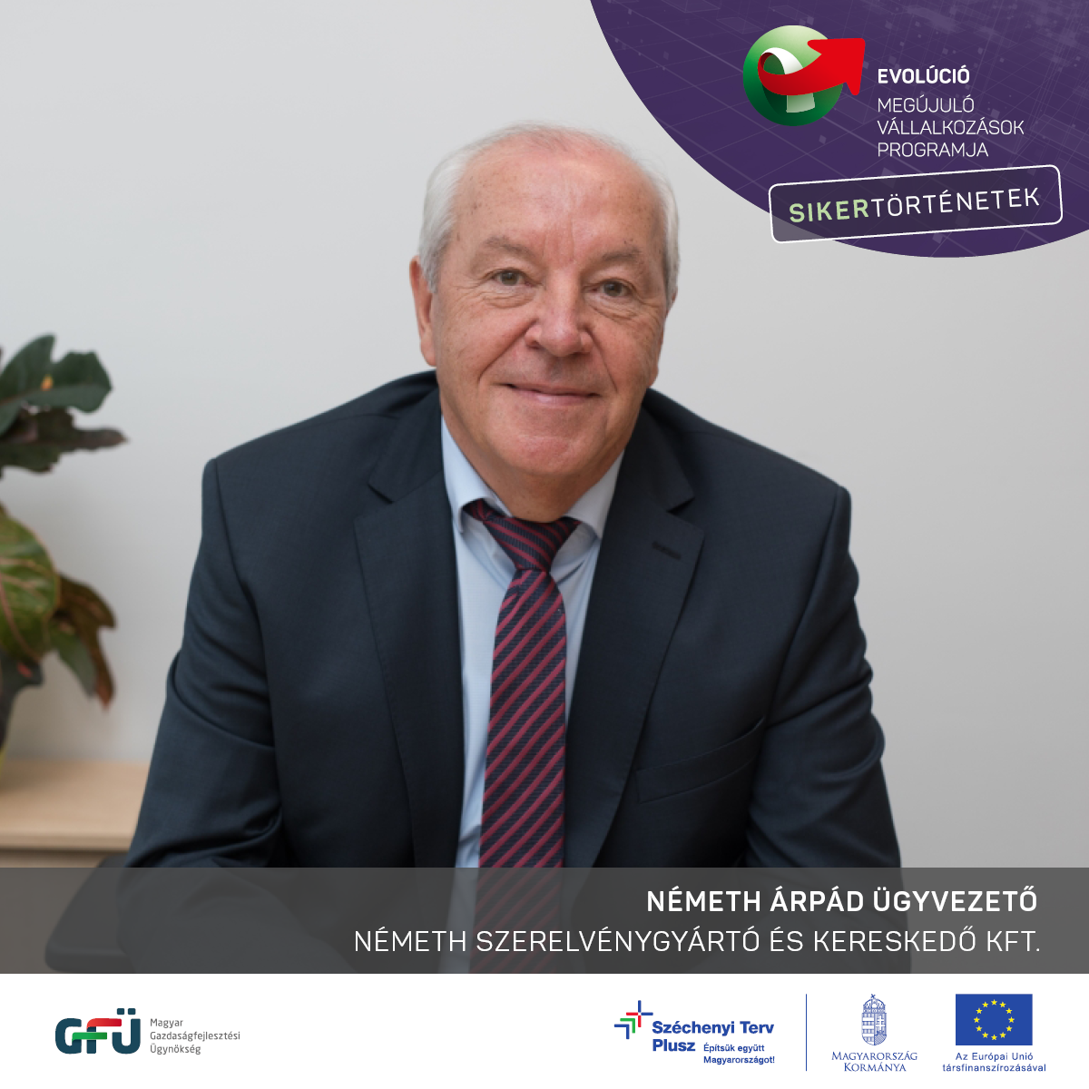 A 2024-ben 40 éves és a kezdetektől sikeres családi vállalkozásom jövőjét szeretném biztonságban tudni. Jómagam kezdtem, három gyermekem pedig a tanulmányaik befejezését követően kis kitérővel csatlakoztak a Németh Szerelvénygyártó és Kereskedő Kft-hez. Az iskolában rendesen megtanult elméleti anyagot és a máshol szerzett tapasztalatot kamatoztatjuk a munkánk során. Az idő múlásával menetrendszerűen jött elő a generációváltás, amely szándékommal mindenki egyetértett a családban.